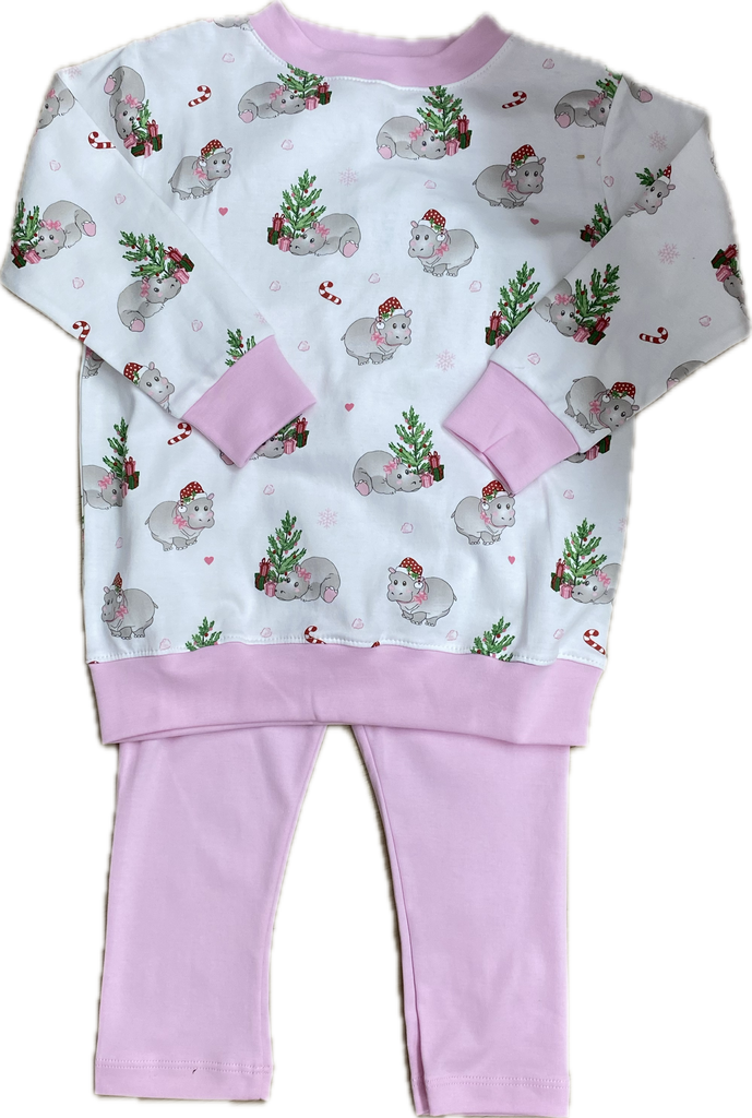 Pink Christmas Hippo LS Crewneck Pant Set - is backordered and will ship as soon as it is back in stock.