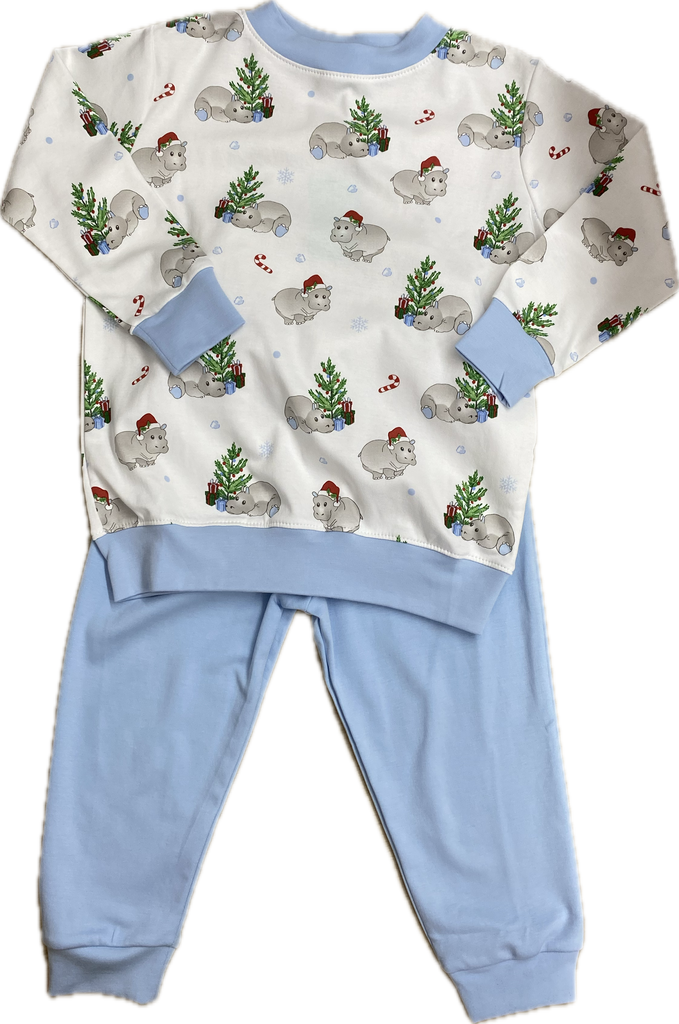 Blue Christmas Hippo LS Crewneck Pant Set - is backordered and will ship as soon as it is back in stock.