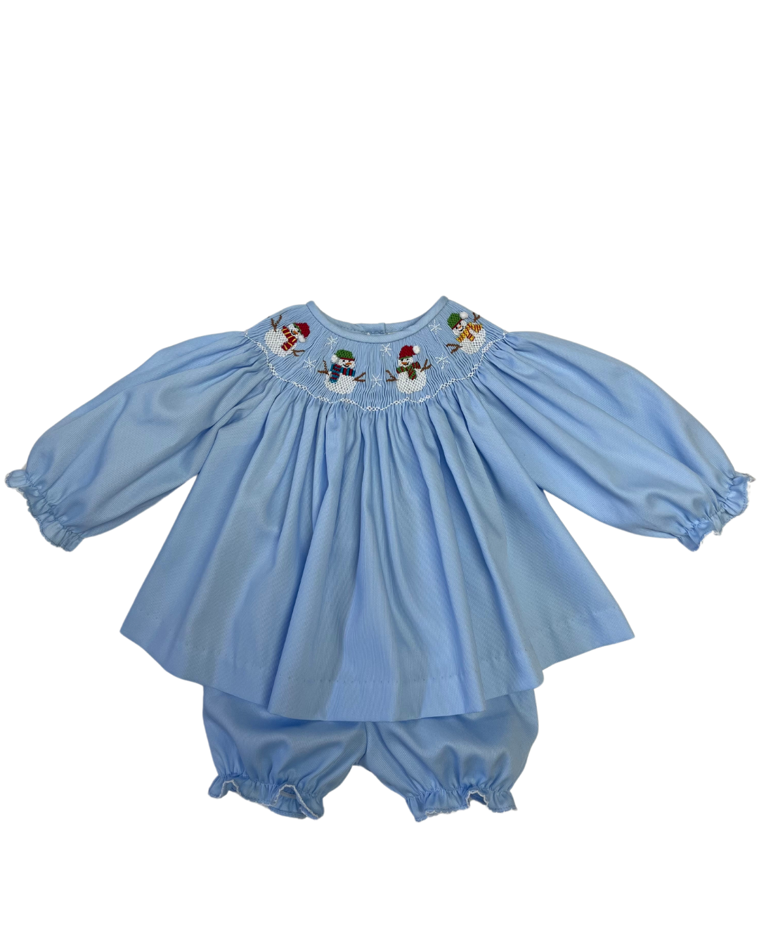 Emma Snowman Smocked Bishop Bloomer Set - is backordered and will ship as soon as it is back in stock.